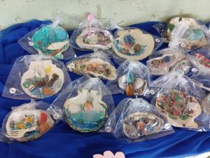 みんな好きな貝殻を選んで色付けし、その上に銚子の浜に流れ着いたゴミをいろいろ工夫してアート作品を制作✍